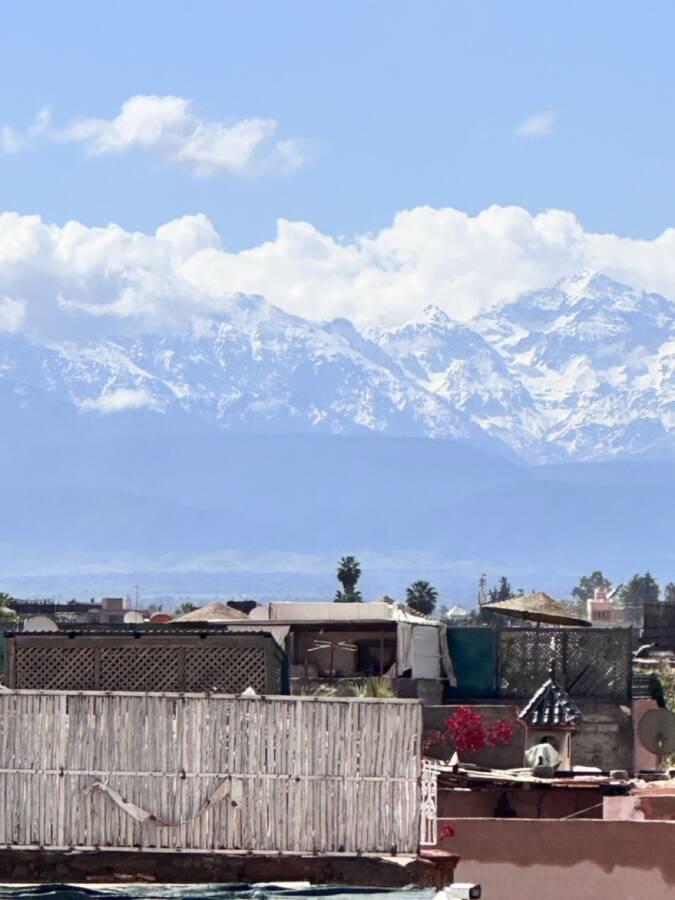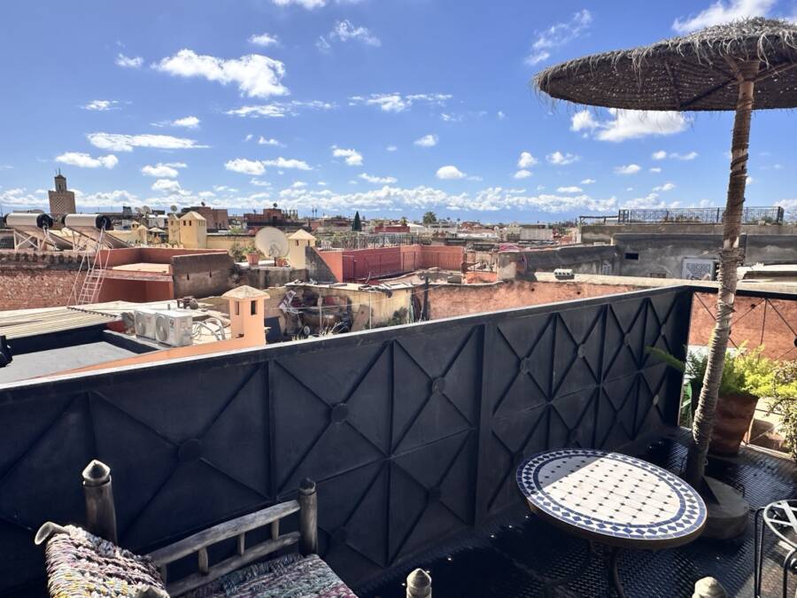Extraordinary belvedere and its small lounge, offering a magnificent view of the Medina and the Atlas Mountains…
