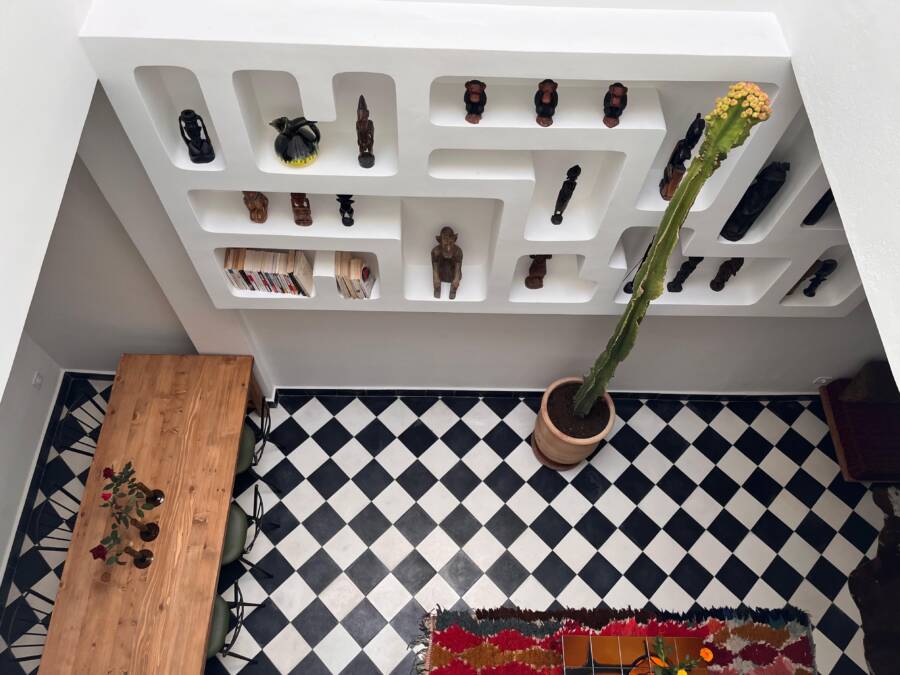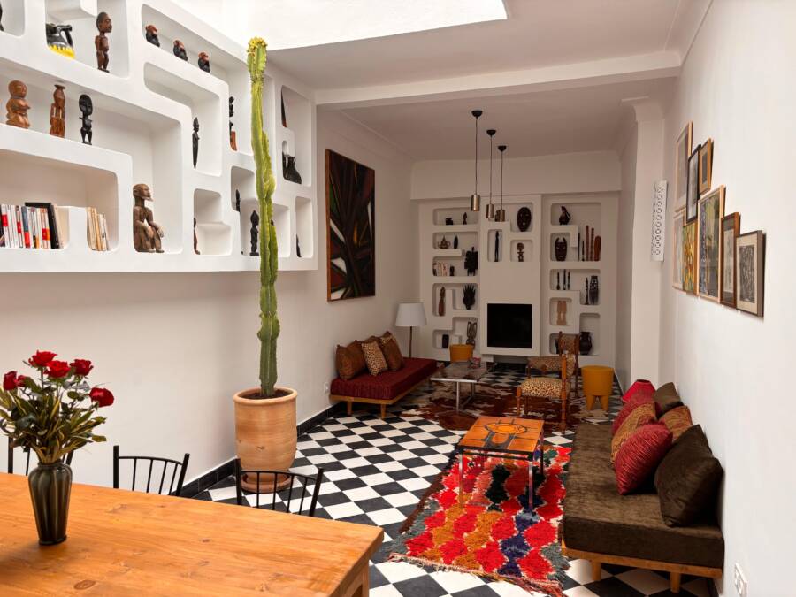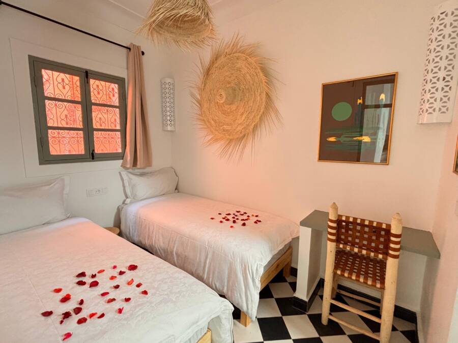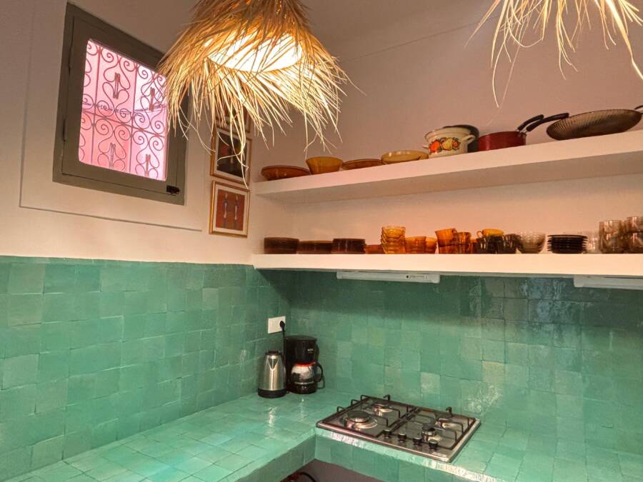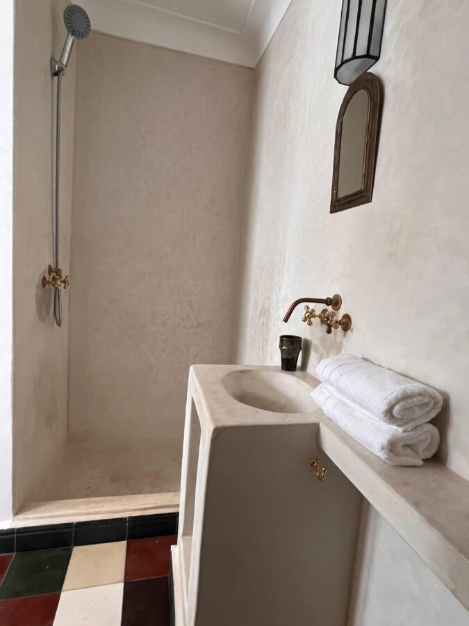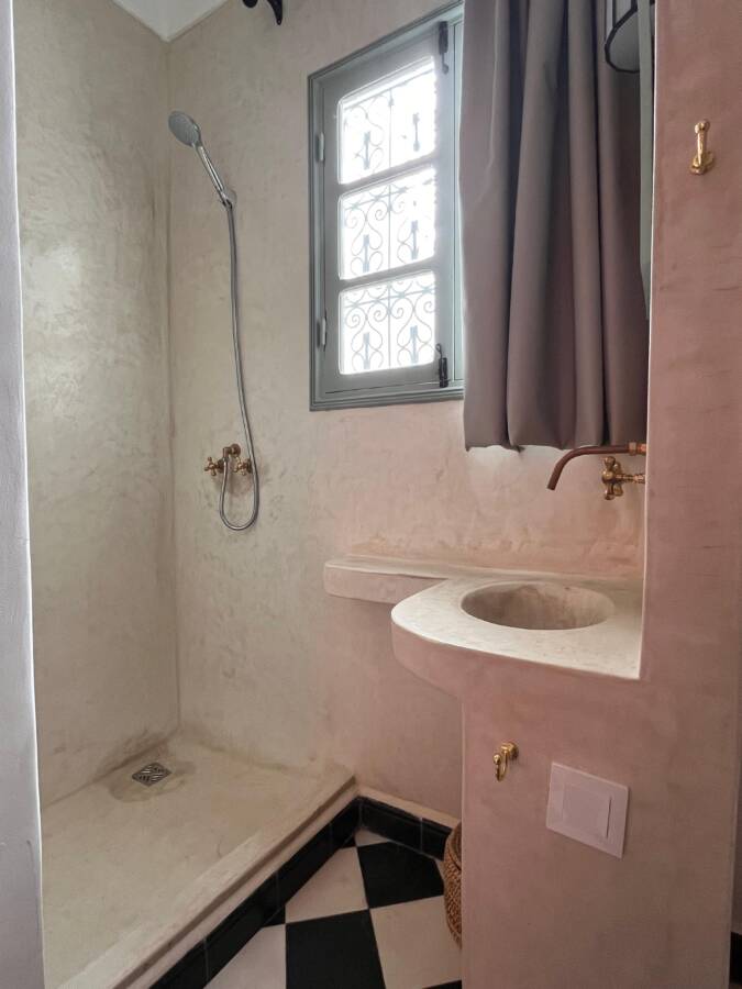 Située dans un quartier très calme, tout en restant facilement accessible, elle dispose d’un accès voiture à l’entrée de la rue, un atout rare en médina.