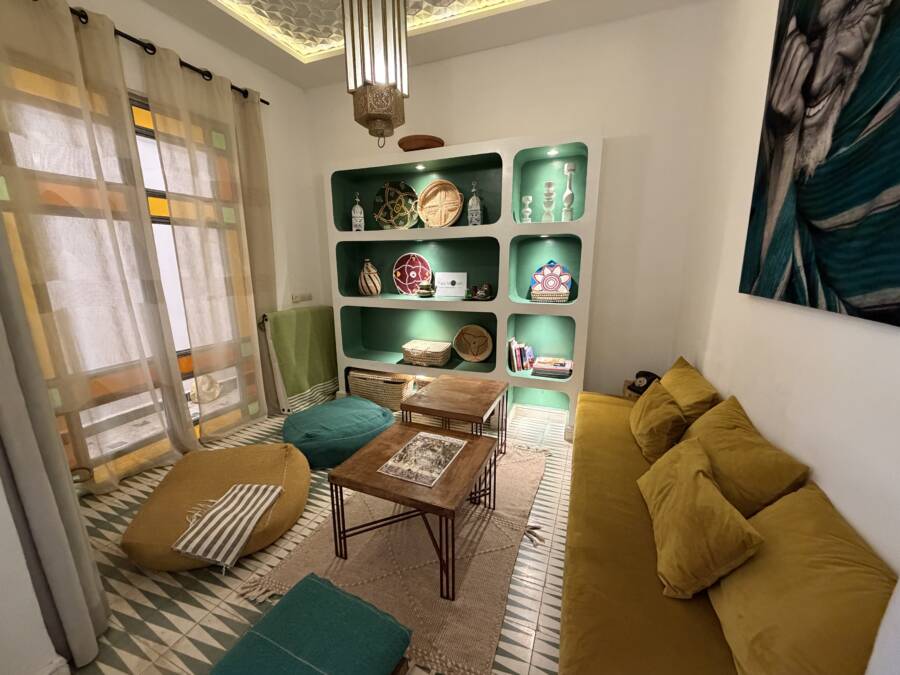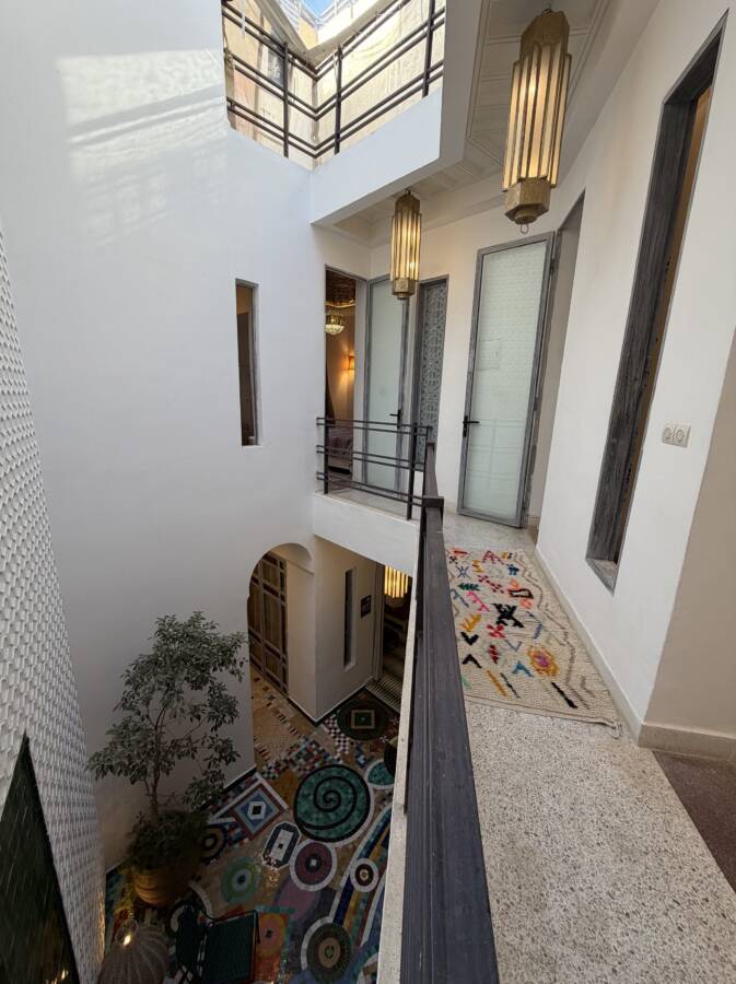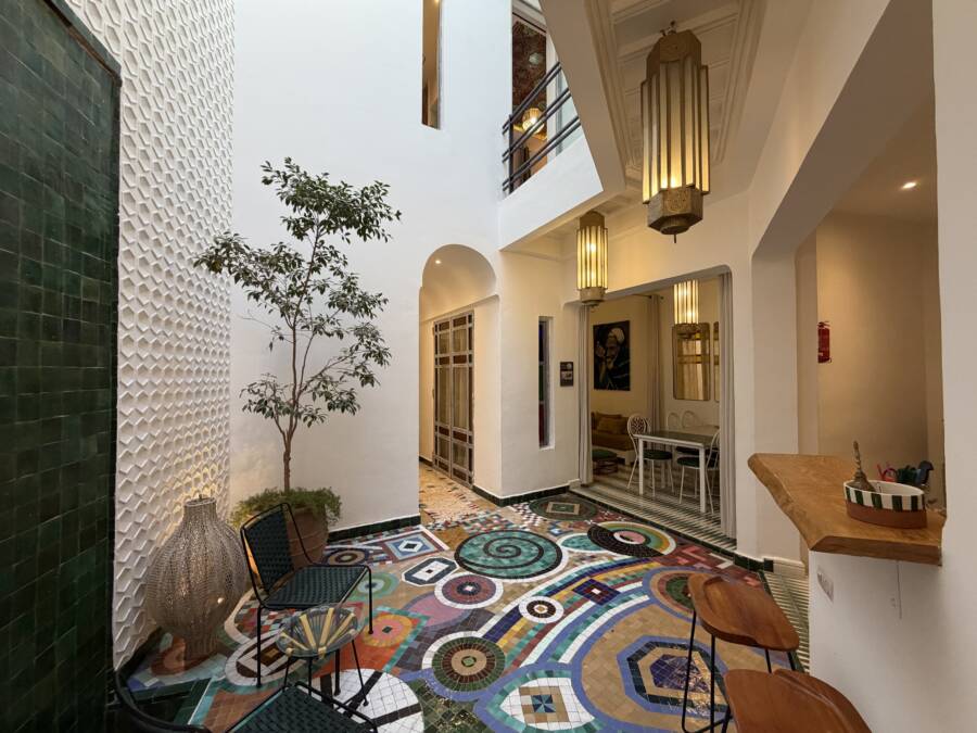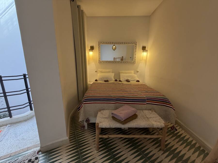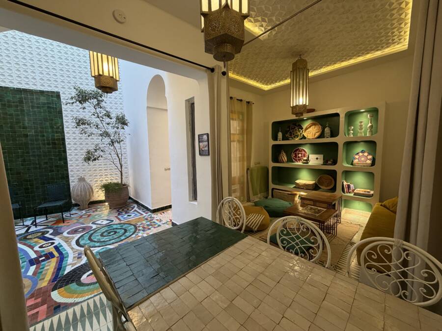 Situé à quelques pas de la célèbre place Jemâa el-Fna. Ce petit cocon a fait l’objet d’un travail de décoration recherché et original, mêlant pièces d’artisanat, textures raffinées et finitions soignées, conférant au lieu une identité unique.