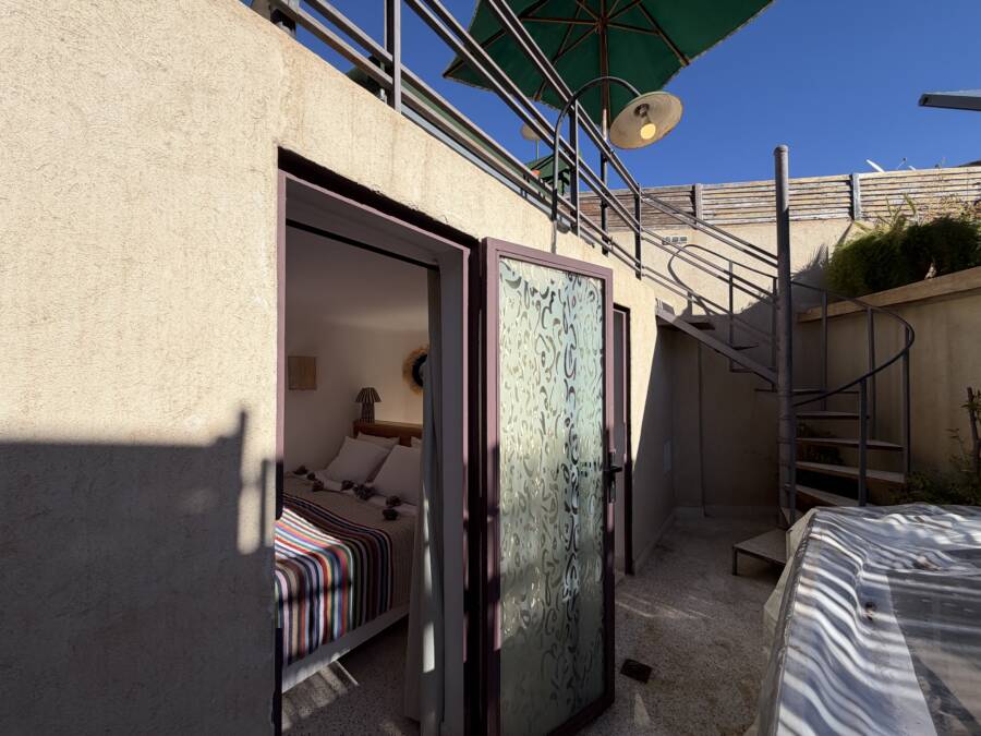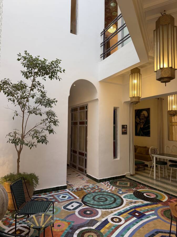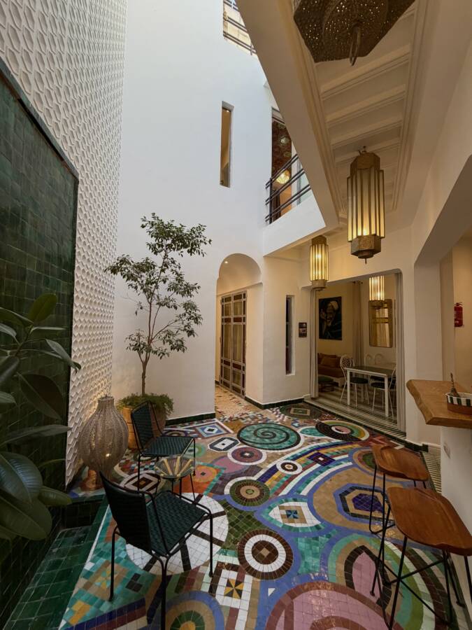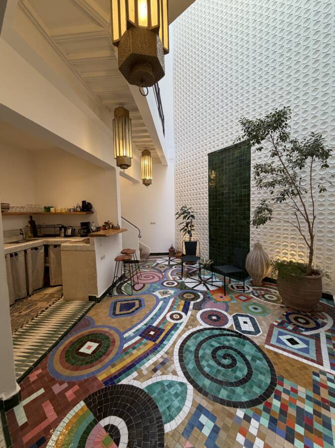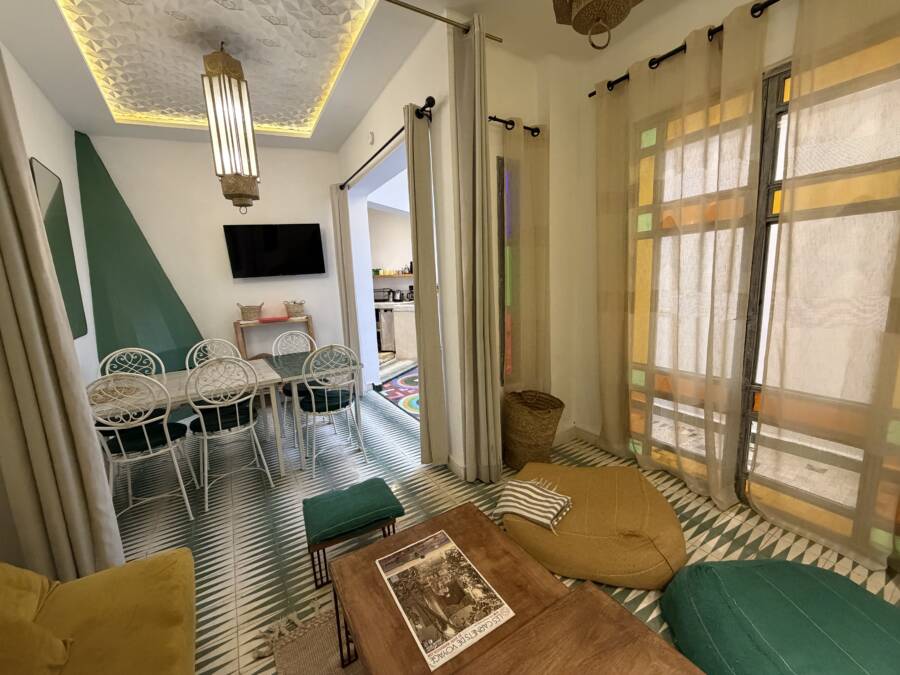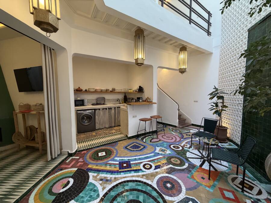 Situé à quelques pas de la célèbre place Jemâa el-Fna. Ce petit cocon a fait l’objet d’un travail de décoration recherché et original, mêlant pièces d’artisanat, textures raffinées et finitions soignées, conférant au lieu une identité unique.