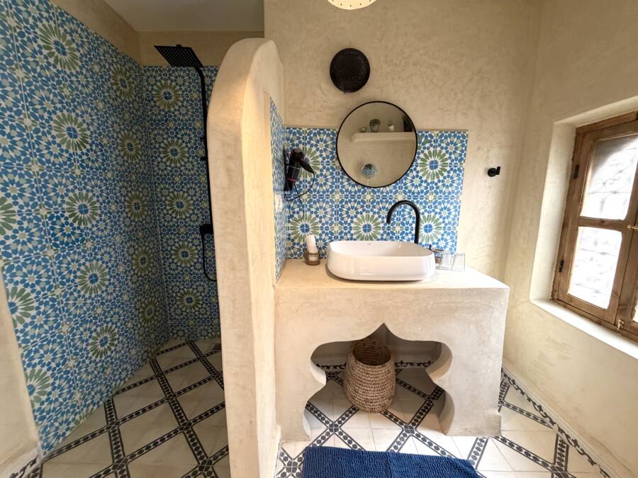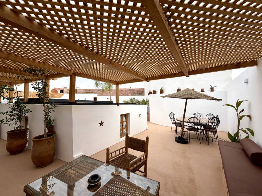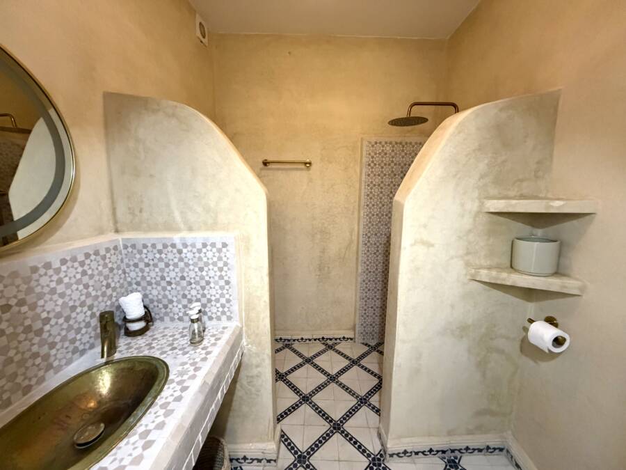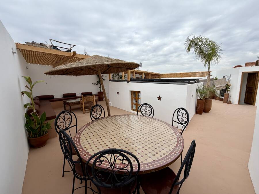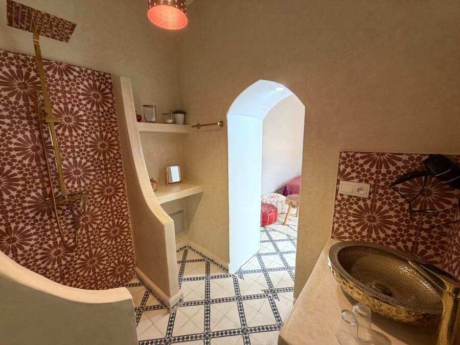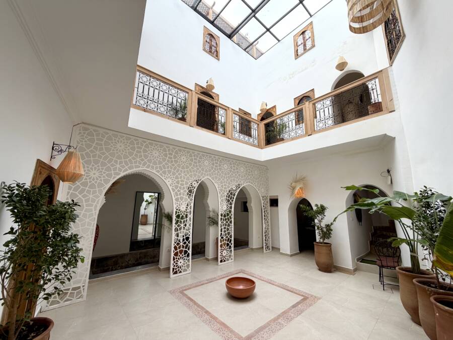 Dès l’entrée, vous découvrez un patio couvert, véritable pièce de vie centrale, offrant un espace chaleureux et utilisable toute l’année. Grâce à sa conception, le riad bénéficie d’une luminosité exceptionnelle et d’une circulation fluide entre les espaces.