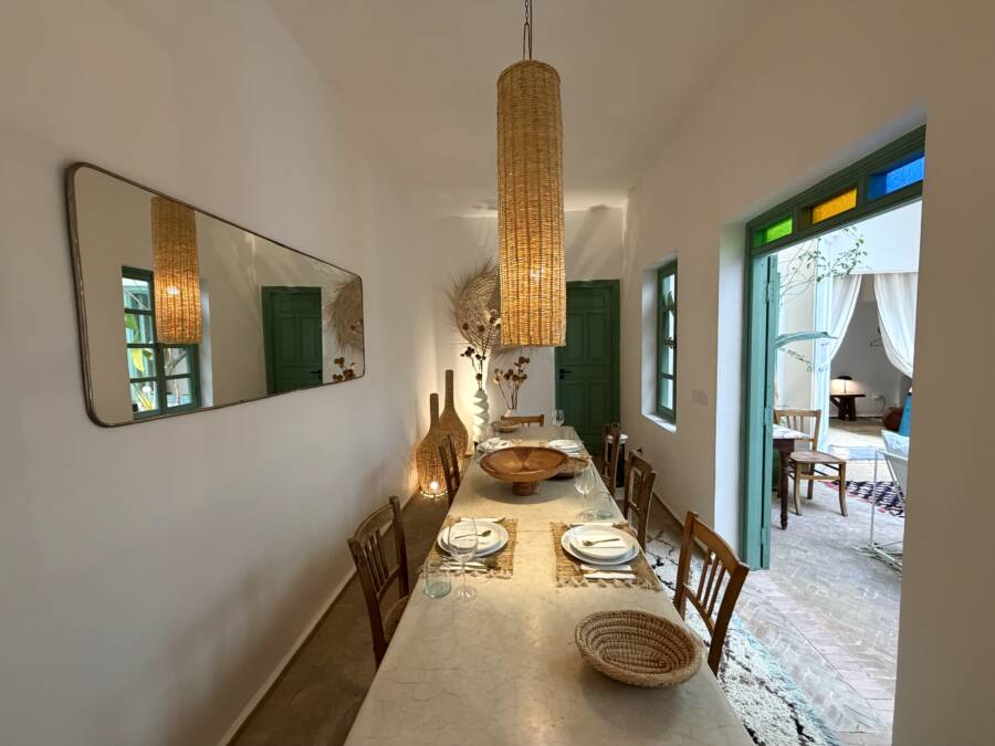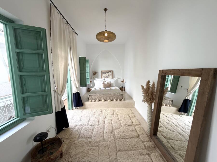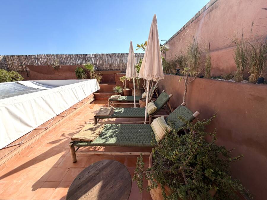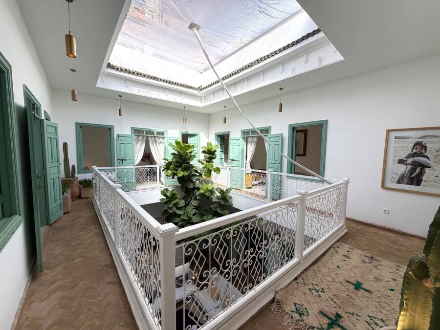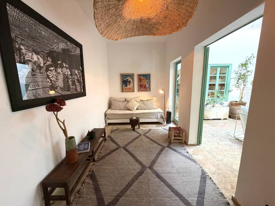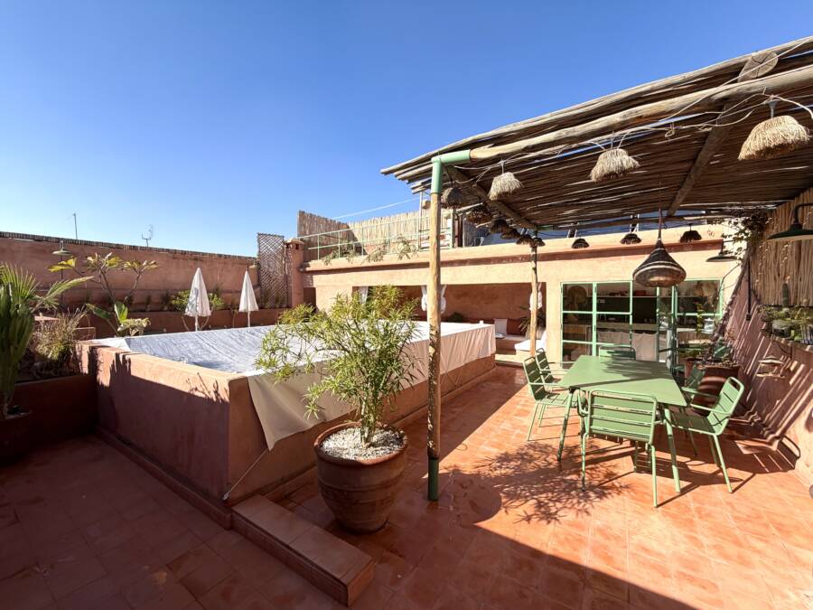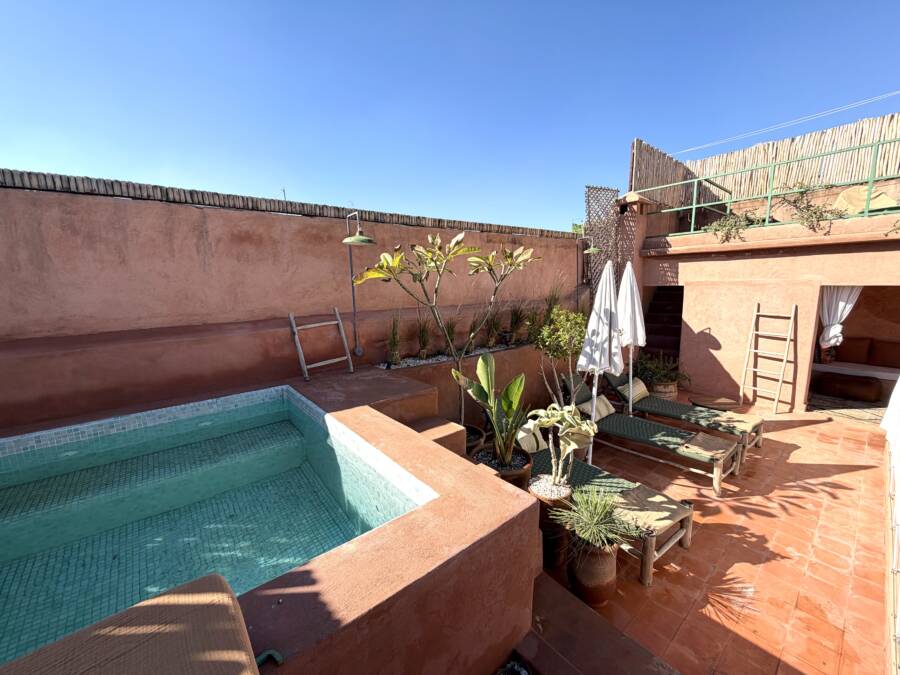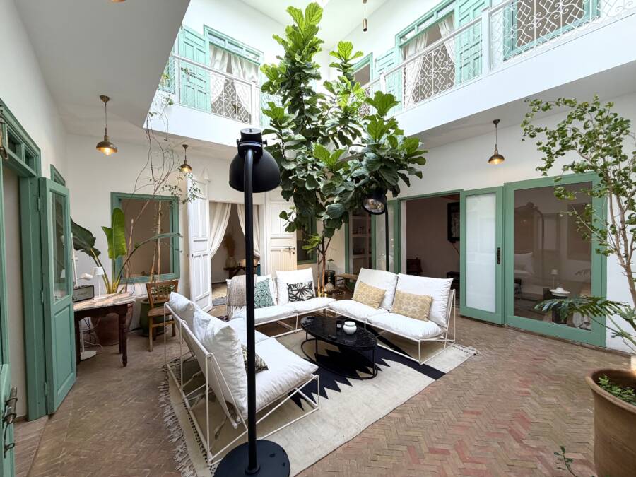 Offrant de très beaux volumes, le riad a été entièrement reconstruit avec des travaux de grande qualité et beaucoup de goût. Il bénéficie d’une excellente luminosité dans l’ensemble des espaces.