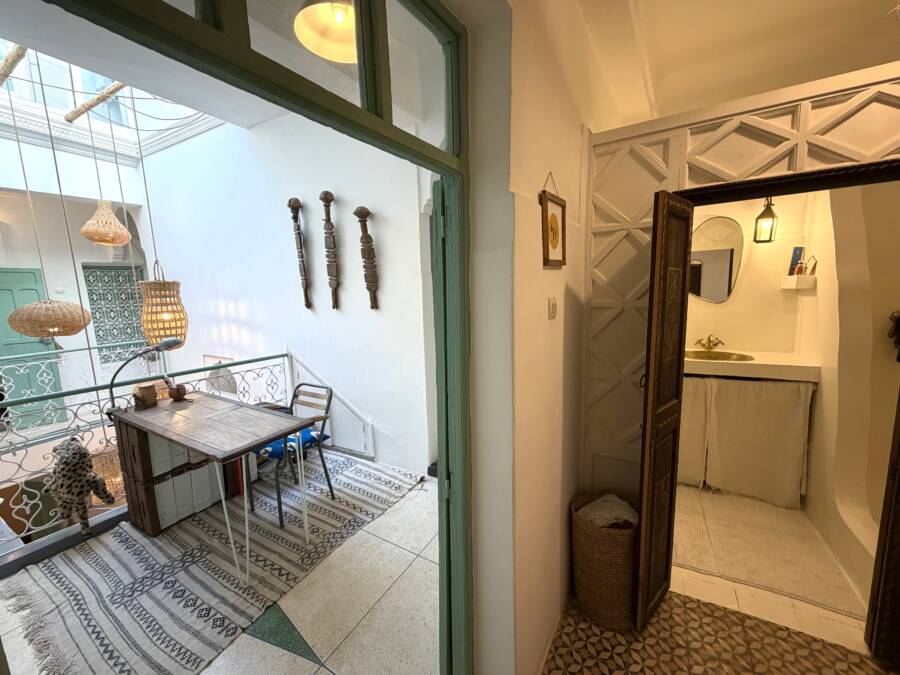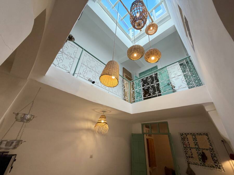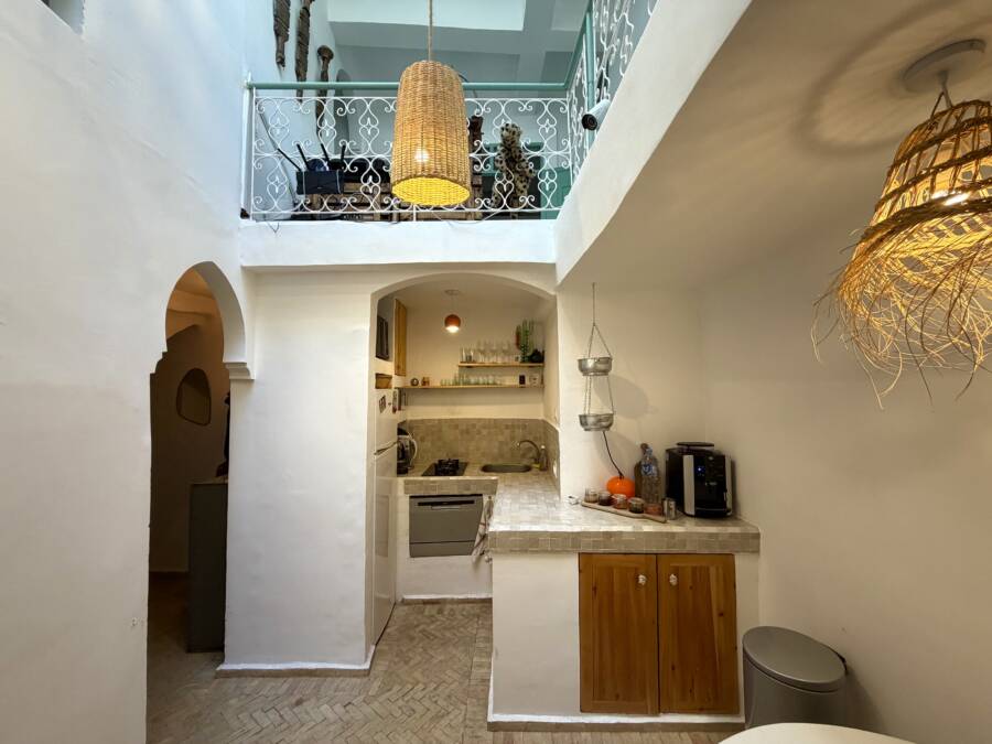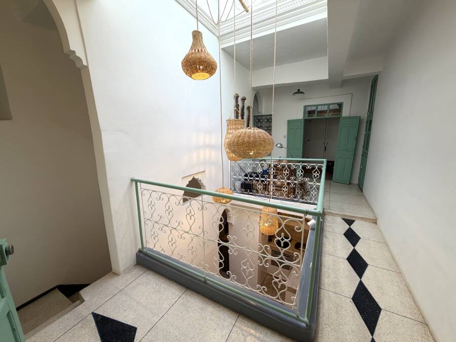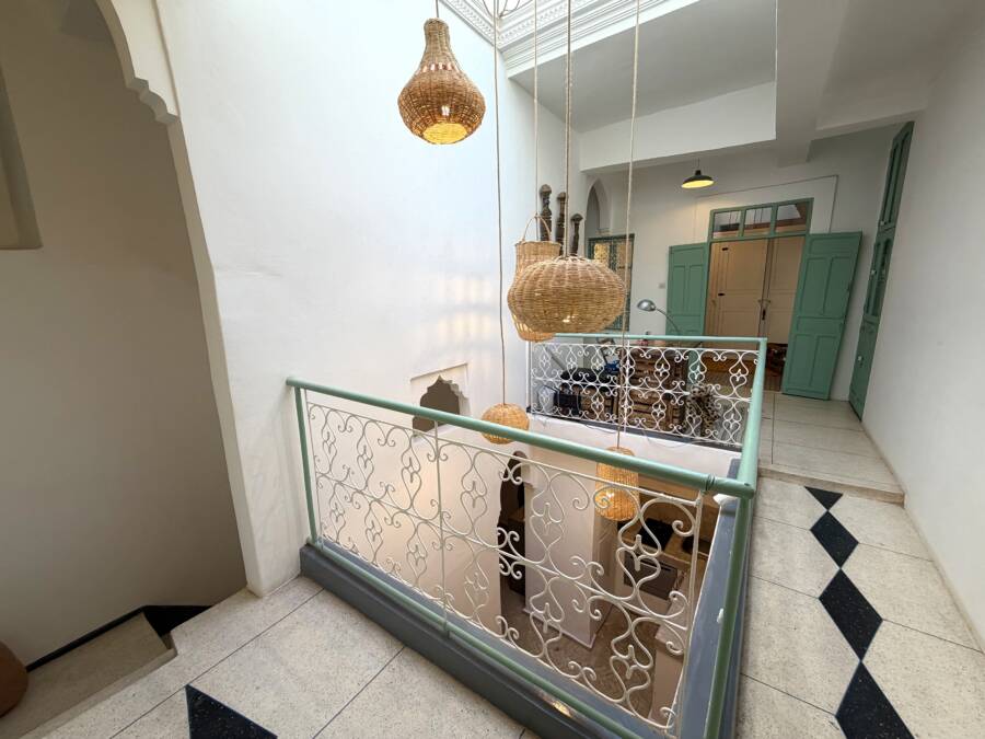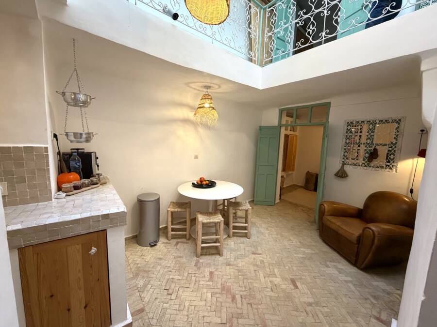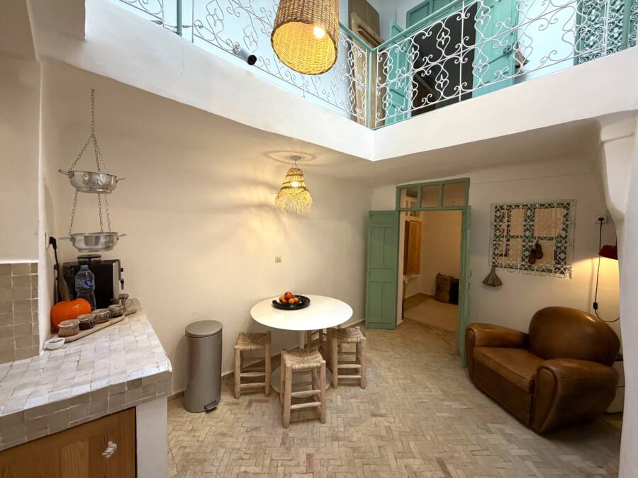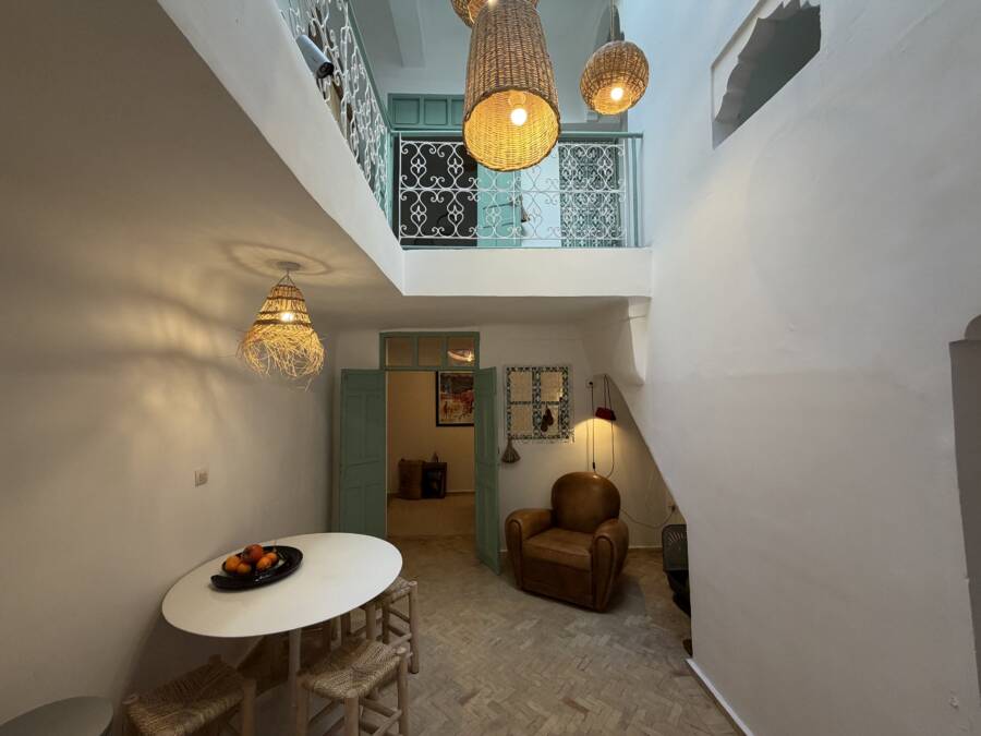 Découvrez ce charmant petit riad, idéalement situé dans un quartier calme de la médina, à l’entrée d’une rue accessible en voiture, à seulement quelques pas de la célèbre Maison de la Photographie.