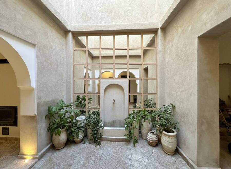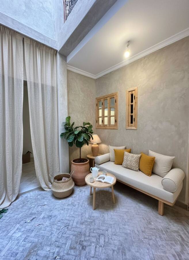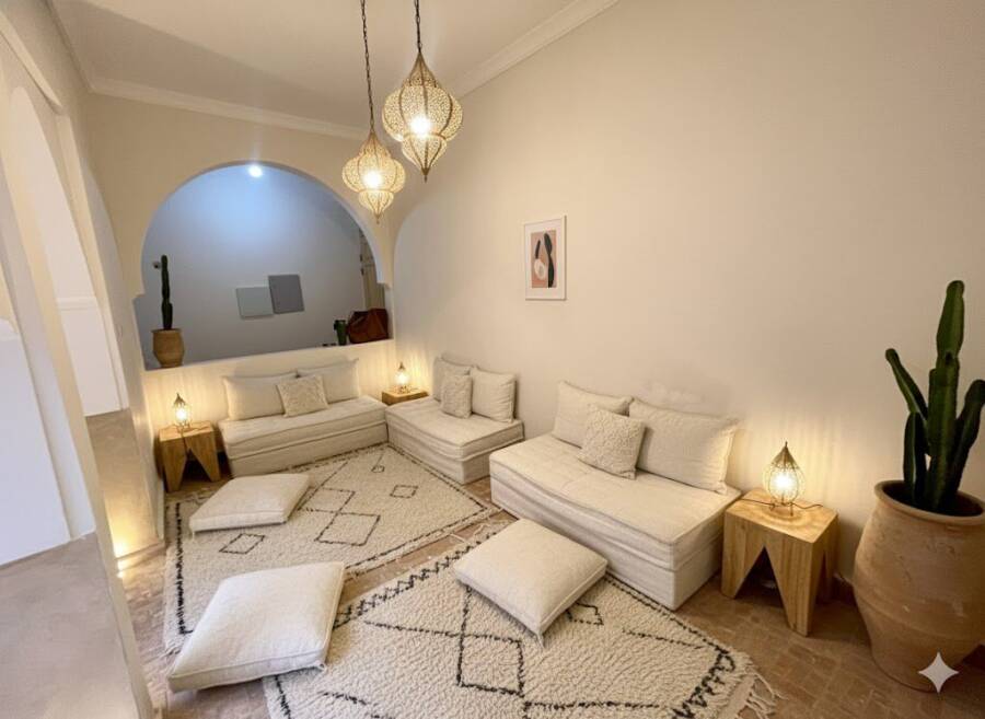 Ce riad a été complètement repensé avec son salon ouvert sur le patio et sa fontaine. La rénovation est de qualité et la décoration a été conçu avec beaucoup de charme.