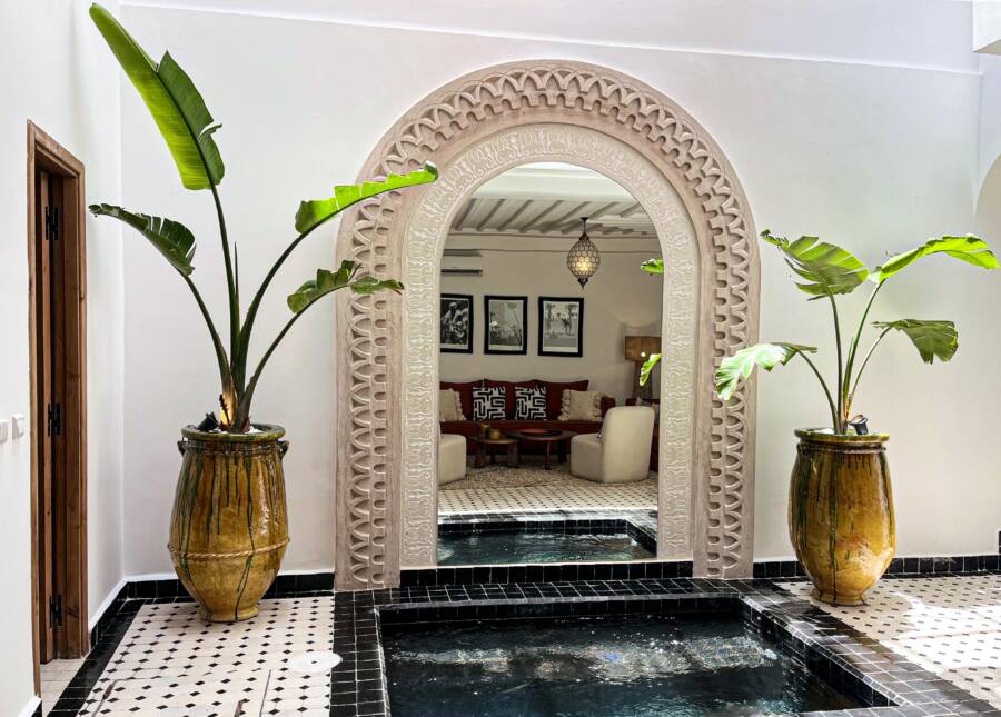 Situé dans le quartier prisé de Sidi Mimoun, ce riad de 4 chambres a été entièrement reconstruit avec des prestations modernes tout en conservant le charme traditionnel marocain. Il dispose de deux bassins et offre une vue exceptionnelle sur la Koutoubia et les jardins du Palais Royal, un cadre unique et emblématique de Marrakech.