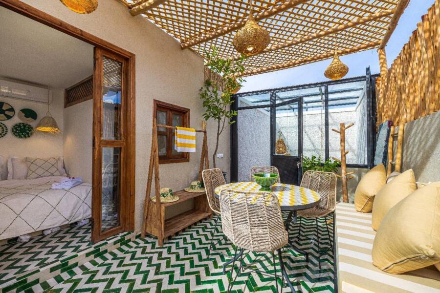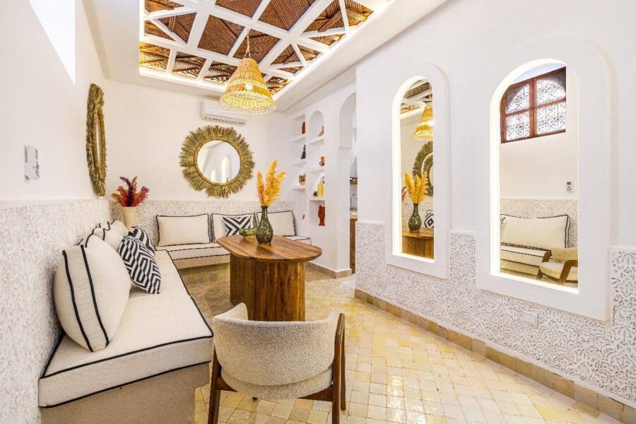 Situé dans un quartier calme et recherché à quelques pas des tombeaux Saadiens et du marché quotidien. Ce petit riad a fait l’objet d’un travail de décoration recherché authentique et original, mêlant pièces d’artisanat et modernité.
